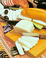 Ein Käse mit einer sehr langen Tradition. Halloumi besteht aus drei Sorten Milch, Kuh-, Schafs- und Ziegenmilch; verfeinert wird er üblicherweise mit Minze, die in vielen zyprischen Gerichten zu finden ist. Je nach Herkunft ist der Käse salzig, mild, weich oder fest. Teilweise auch regelrecht grün, da er viel Minze beinhaltet. Da man Halloumi auf unterschiedliche Art und Weise zubereiten kann, reicht sein Geschmack von mild und frisch, bis hin zu deftig und intensiv. Bevorzugt wird Halloumi gegrillt, dann entfaltet er sein volles Aroma. Gebraten, intensiviert sich sein Geschmack erheblich. Roh kann man ihn gut zum verfeinern vieler Gerichte, Salate und Soßen verwenden.